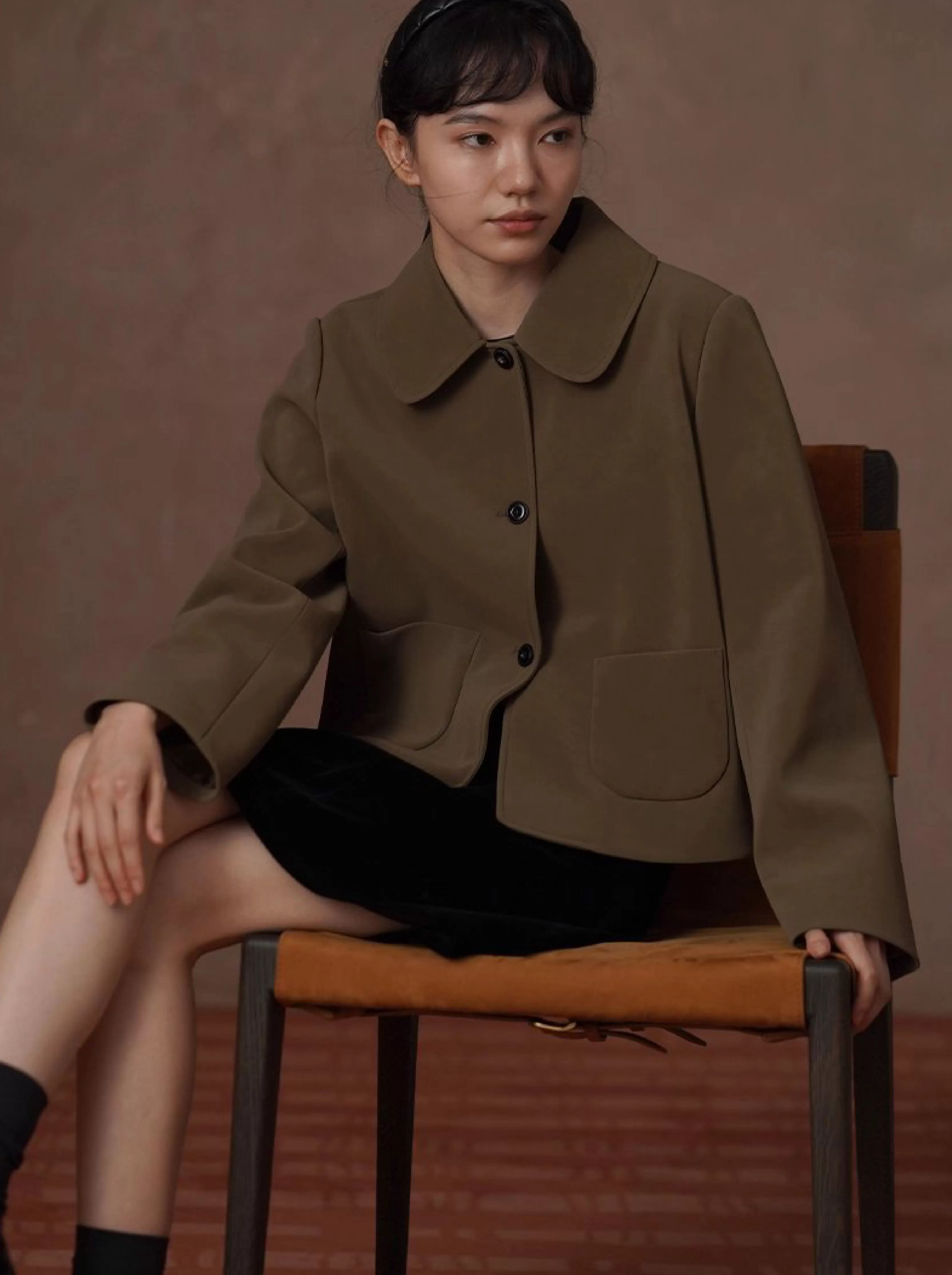 溫暖可露麗風外套磨砂霧面pu短版寬鬆正肩翻領顯瘦夾克 | envispace