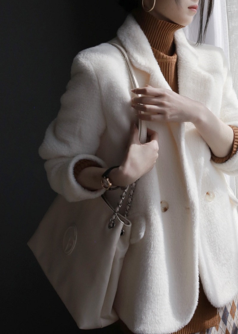 冬季新款設計感小個子加厚寬鬆氣質柔軟毛毛西裝外套