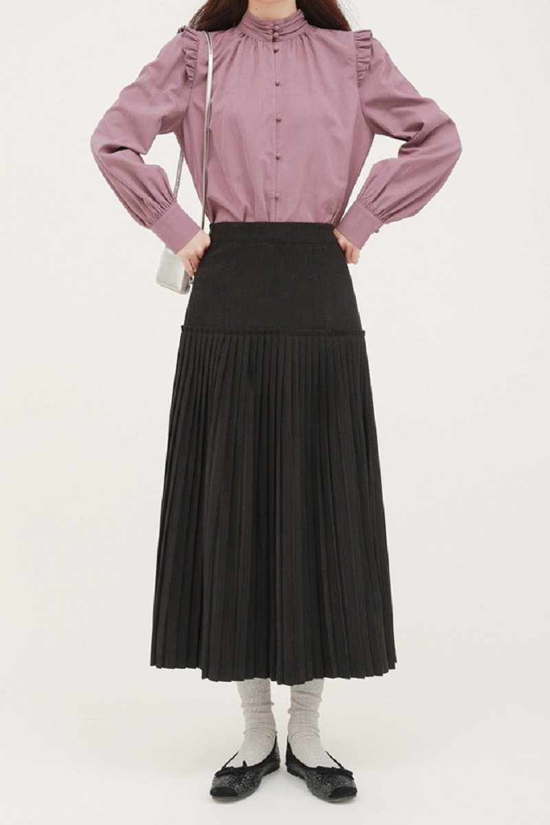 春意濃A字高腰半身裙高支高密挺括立體壓褶顯瘦學院裙