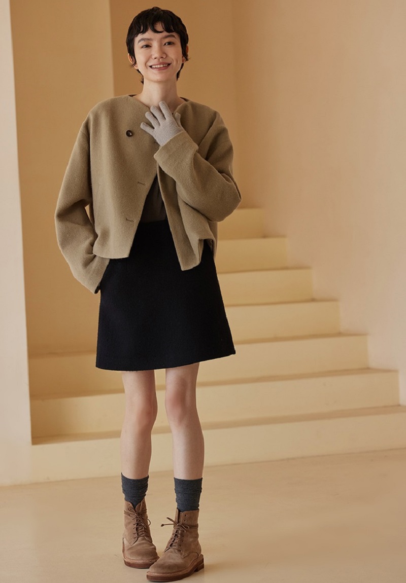 經典版型絨感斜紋呢料感高腰遮跨A下擺短裙