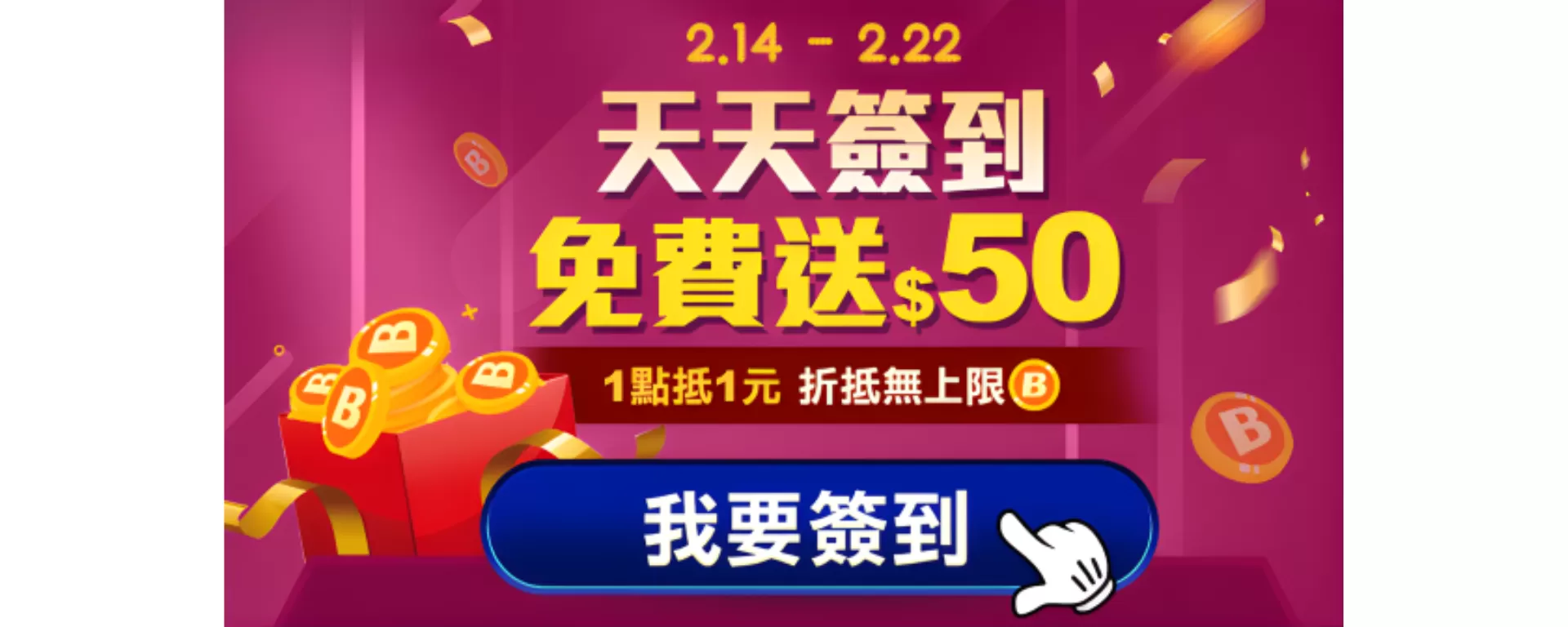 🎁 天天簽到送紅利50點 活動說明如下: